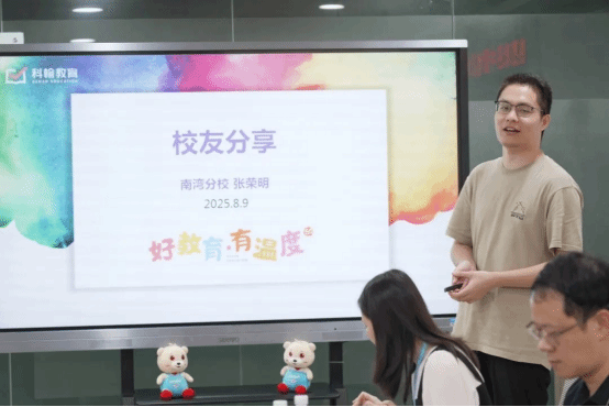 他讲述了自己对教师岗位的从陌生到逐渐适应的过程,从总部刷题备课、练课反思,到南湾分校担任助教、参与家长会,他不仅掌握了教学技巧与办公技能,更深刻体会到了“教育者的温度”。